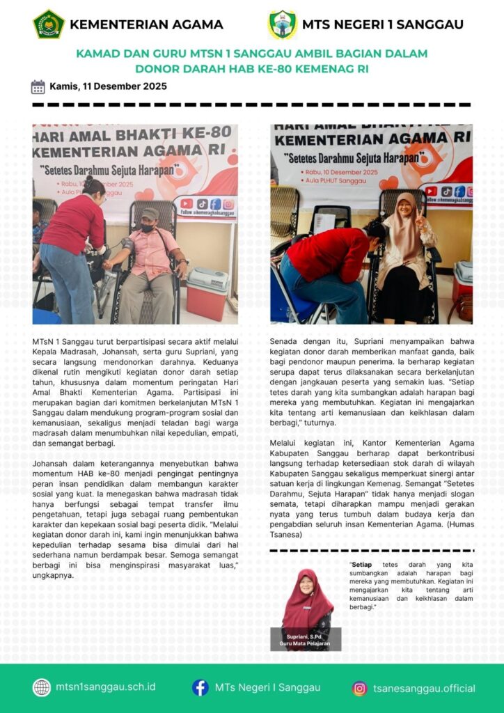 KAMAD DAN GURU MTSN 1 SANGGAU AMBIL BAGIAN DALAM DONOR DARAH HAB KE-80 KEMENAG RI