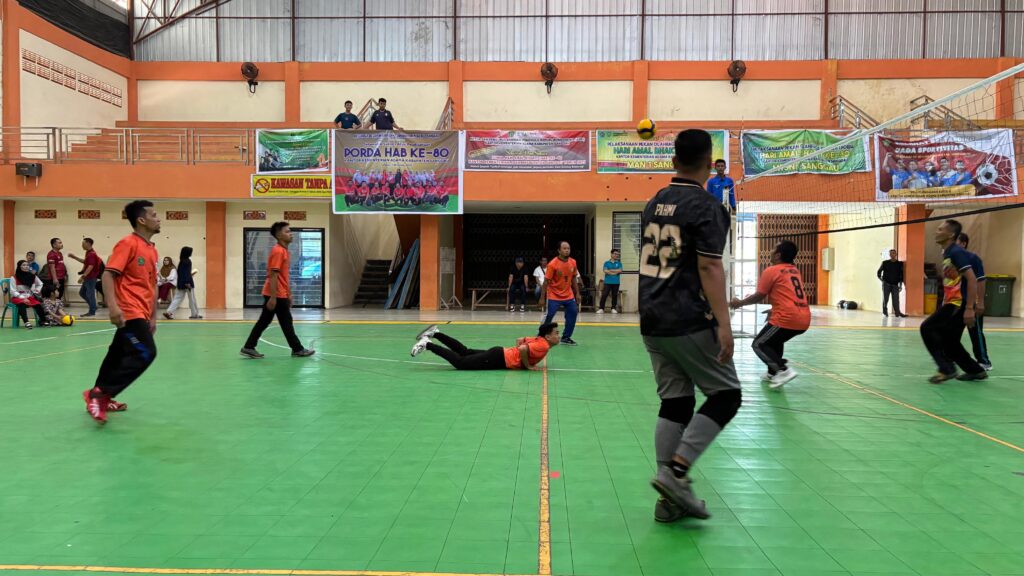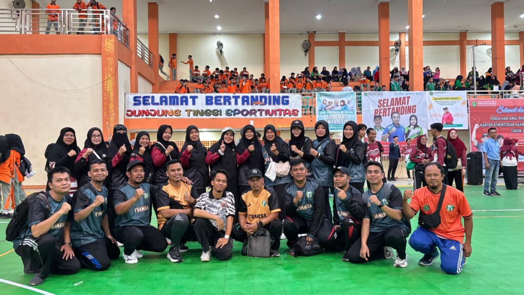 Sanggau – Suasana penuh semangat mewarnai ajang Pekan Olahraga Daerah (PORDA) Hari Amal Bhakti (HAB) Ke-80 Kantor Kementerian Agama Kabupaten Sanggau Tahun 2025 yang digelar pada 5–6 November 2025 di GOR Bujang Malaka Sanggau. Dalam kegiatan yang mempertemukan berbagai satuan kerja Kemenag ini, MTsN 1 Sanggau tampil kompak dan menyeluruh, mulai dari guru, pegawai, hingga siswa yang turut hadir memberikan dukungan langsung dari tribun. Hasilnya, madrasah berhasil meraih Juara 4 Voli Putra dan Juara 4 Tenis Meja Tunggal Putri.