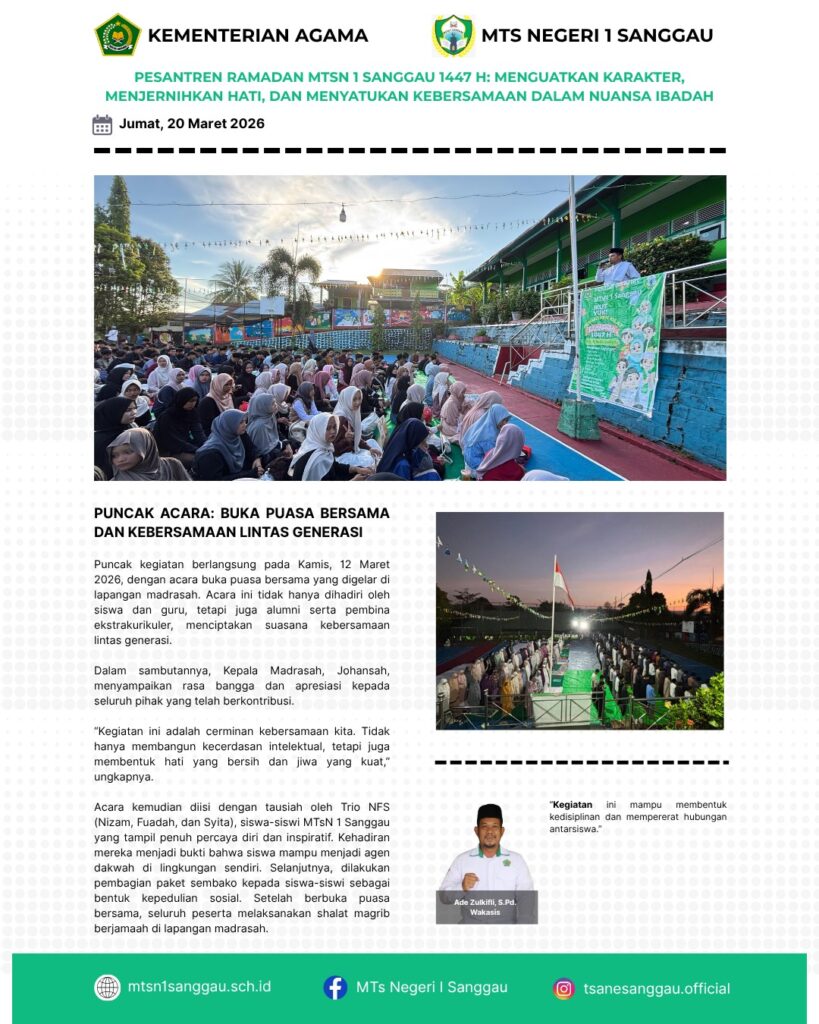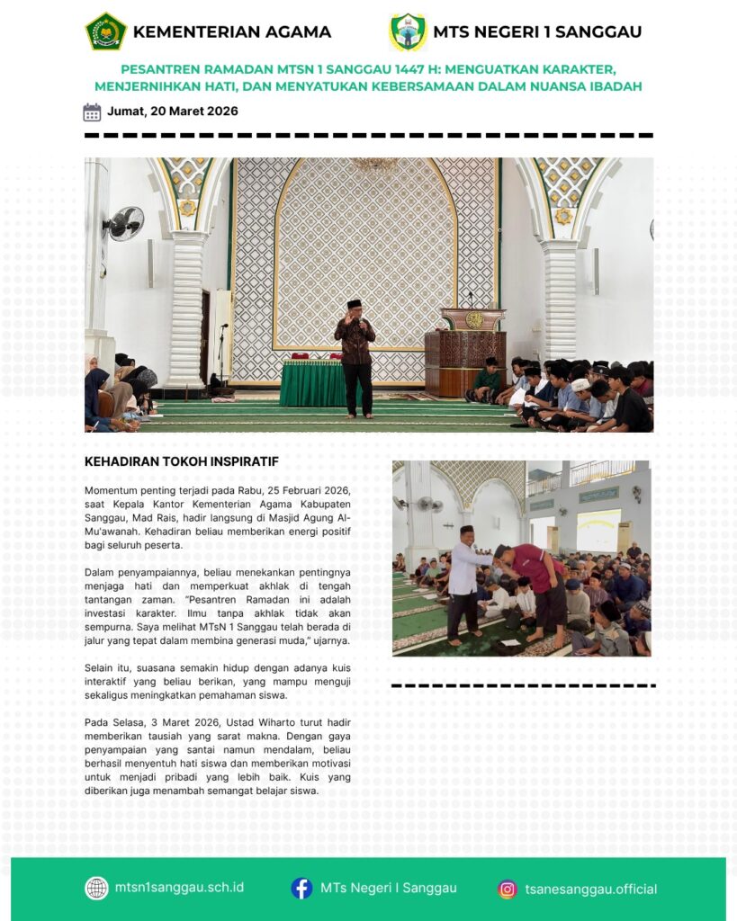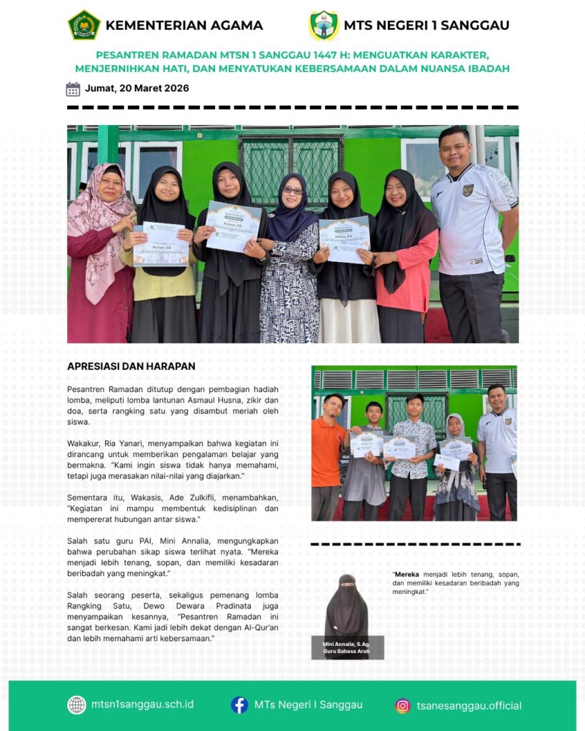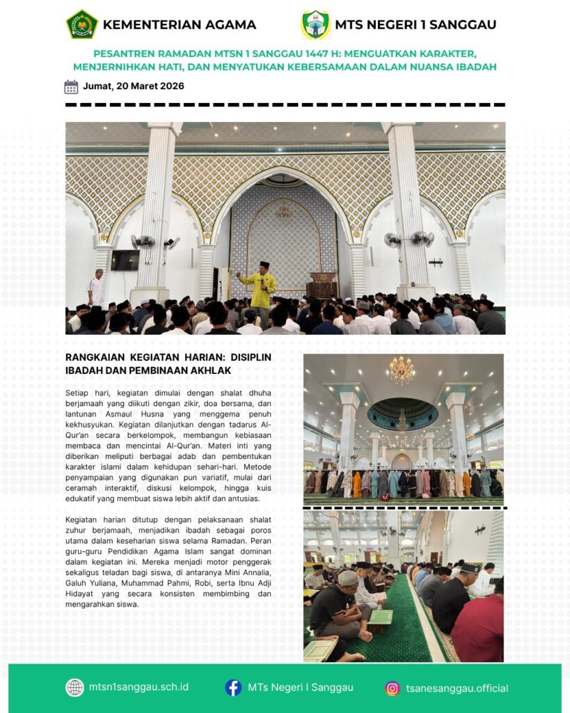 You are currently viewing PESANTREN RAMADAN MTSN 1 SANGGAU 1447 H : MENGUATKAN KARATER, MENJERNIHKAN HATI, DAN MENYATUKAN KEBERSAMAAN DALAM NUANSA IBADAH